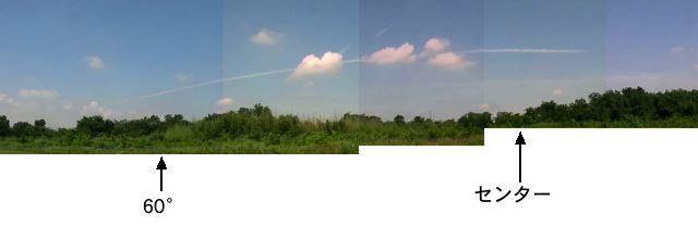 私がとりあえず知りたいのは、画像のセンターから60°までの飛行機雲の長さで、この長さが分かれば、地球の丸みの影響も出す事が出来ます。