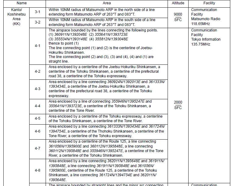 民間航空機の試験空域エリアの座標はAIS JAPANのサイトにログインし手に入れることができました。