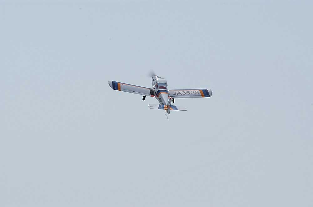 ラダ−上部の赤色飛行灯が点滅しプロペラ下のランディングライトが点灯します。 |
