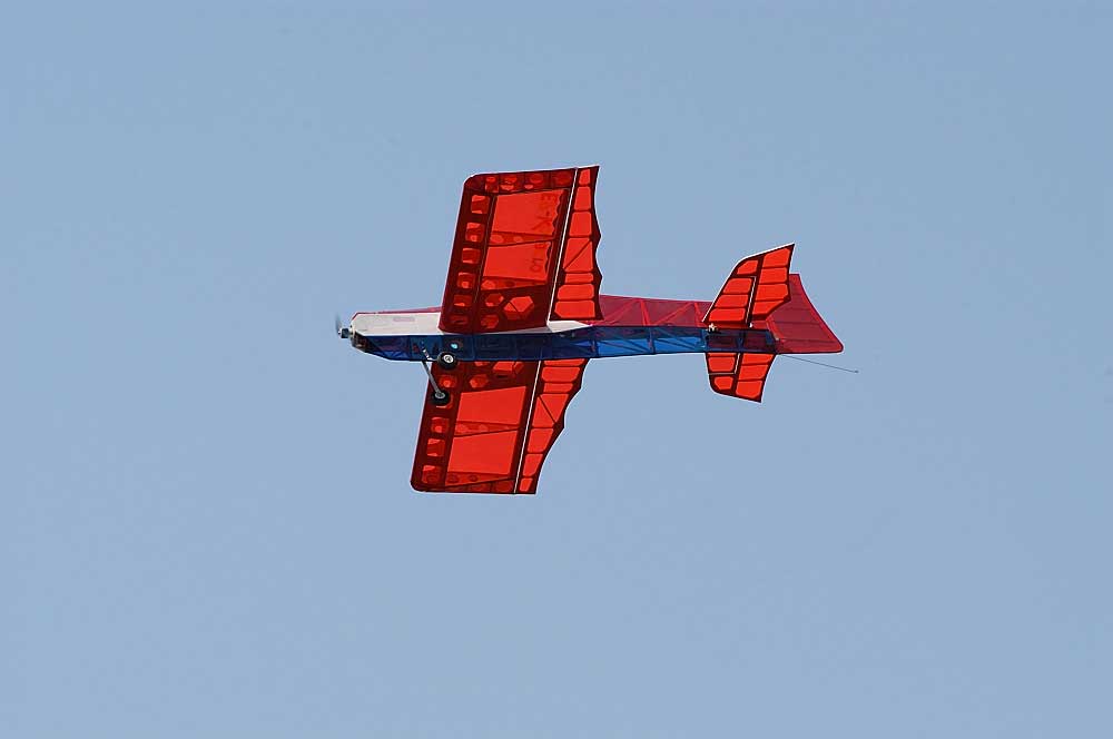 パワフル方向の設定のため、大変良く飛びます。 ただ、軽量に作りすぎたので同サイズに比べて主翼が軽く横風に弱い傾向が有りそうです。