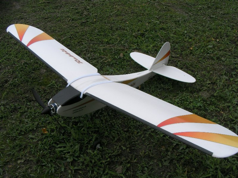 何年か前にはやりましたよね。でもその頃はブラシモーターにニッカドで、全備重量も500gくらいの機体が多かったようです。 そこで、最近のブラシレスモーター&リポを使えばかなり軽く仕上がるのではないかと考えました。 結果はそのとおりで、300gで出来てしまいました。 その飛びは素晴らしいの一言です。(ハンドランチ仕様のカタログデータとほぼ同じです) |