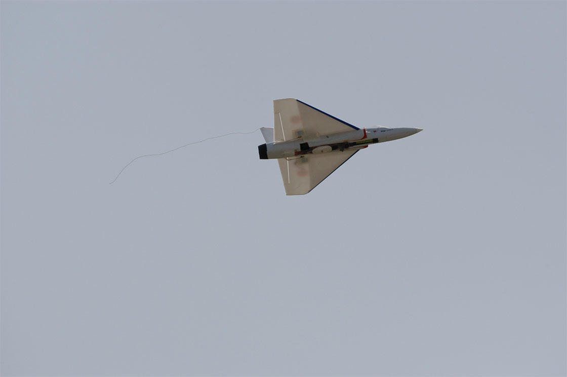 垣内さんのF-16を受け継ぎ、話題のリチウムポリマーを搭載、らくらく手投げでフライトしました。