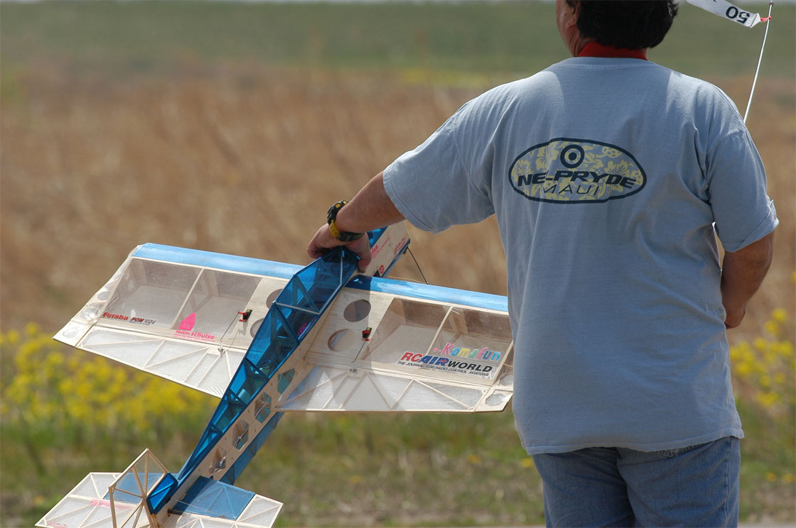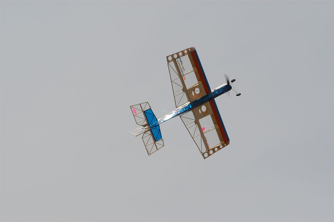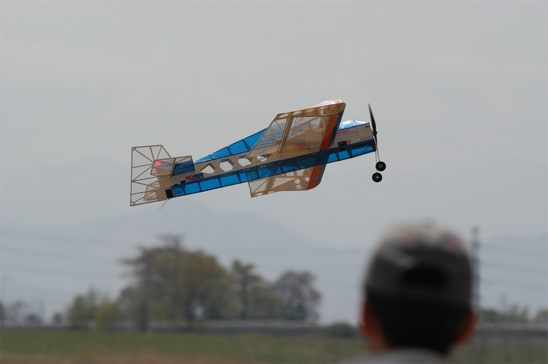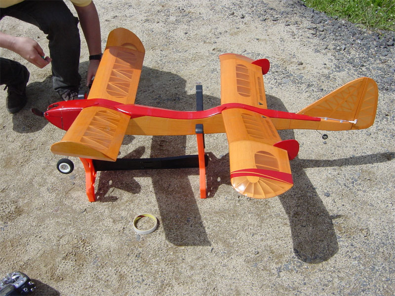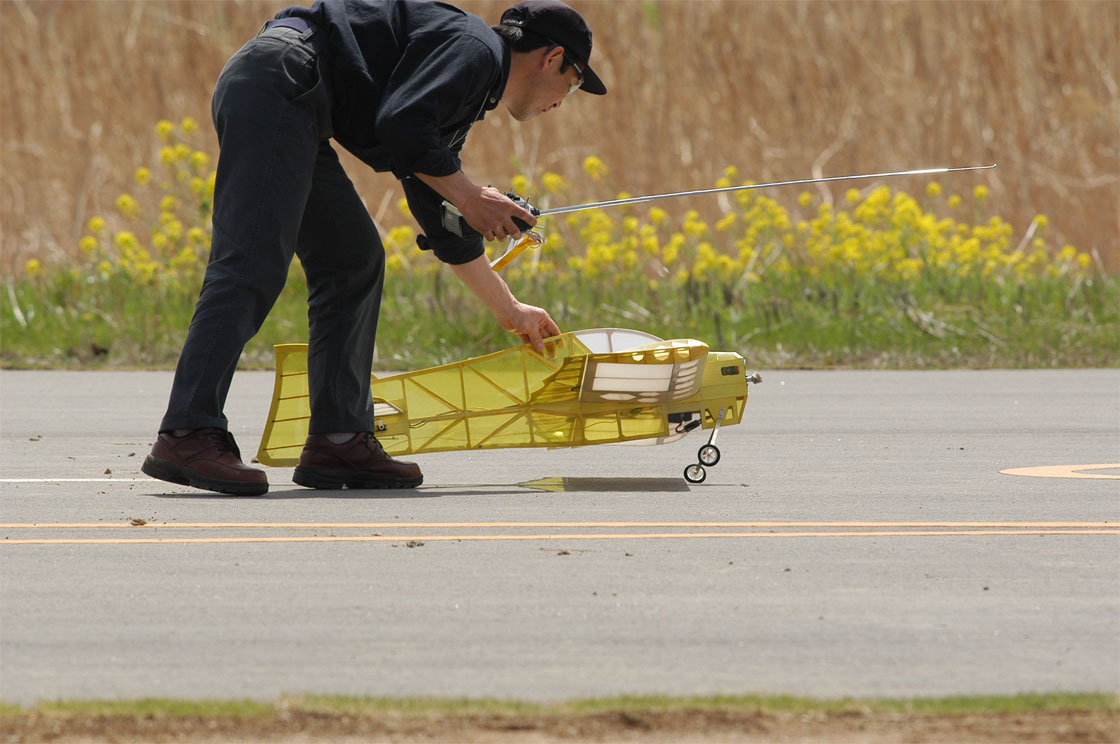 Description: 1988年頃、京商から発売されていたパイロンレーサー風のスポーツ機です。当日初飛行になりそうです。胴体が細く、リンケージには泣かされました。無事、手元に戻ってくることを望む!