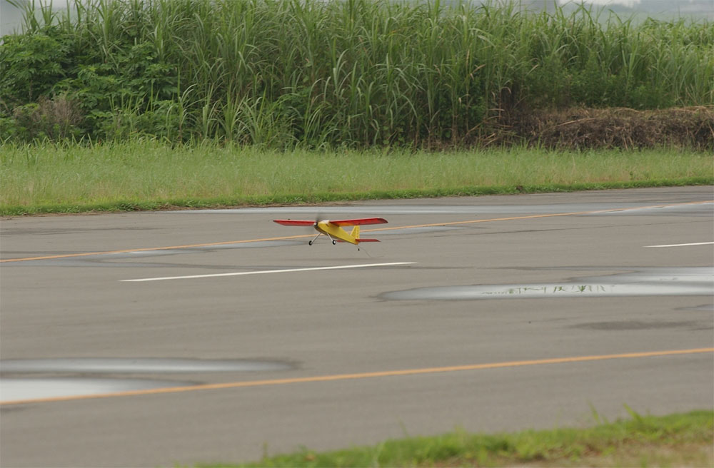 昔飛ばしたシングル機の復活版、ラダーとエンコンのみで着陸まで操縦、やっぱり難しかったらしいです。