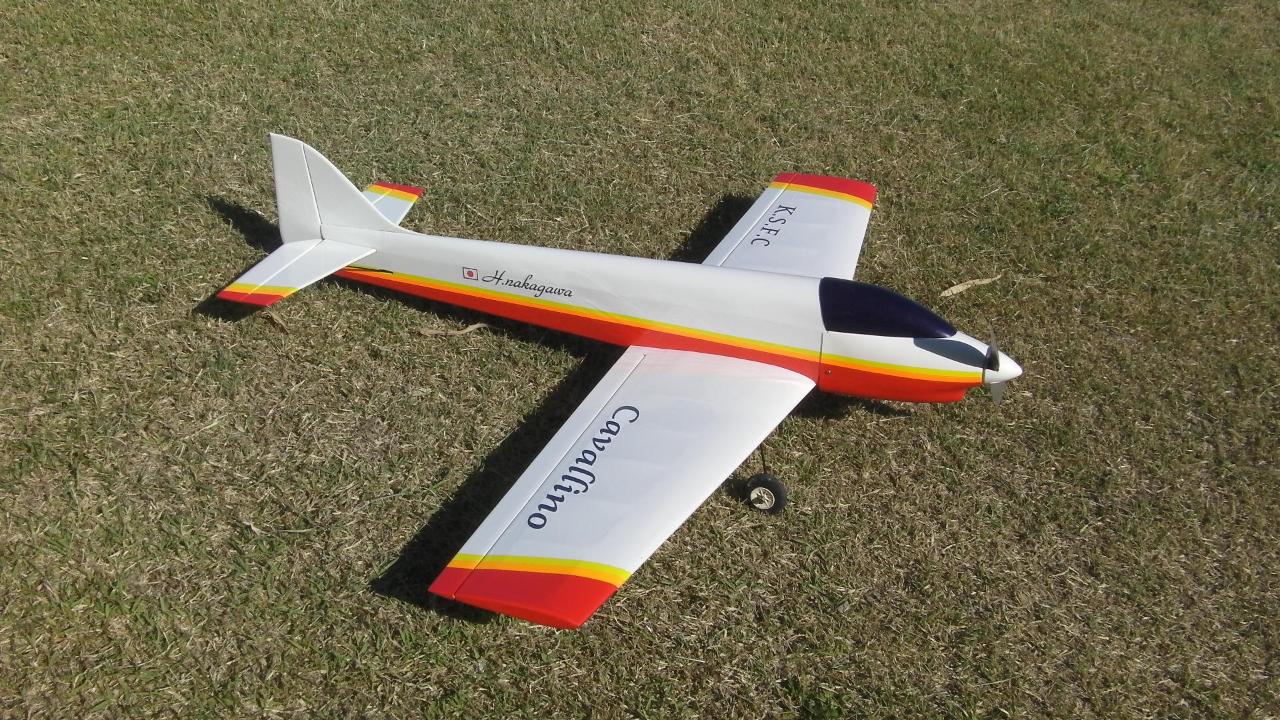 Wing: 1080 (mm)  22 (dm^2)  Length:970 (mm)  Wing:バルサフィルム  Fuselage:バルサフィルム