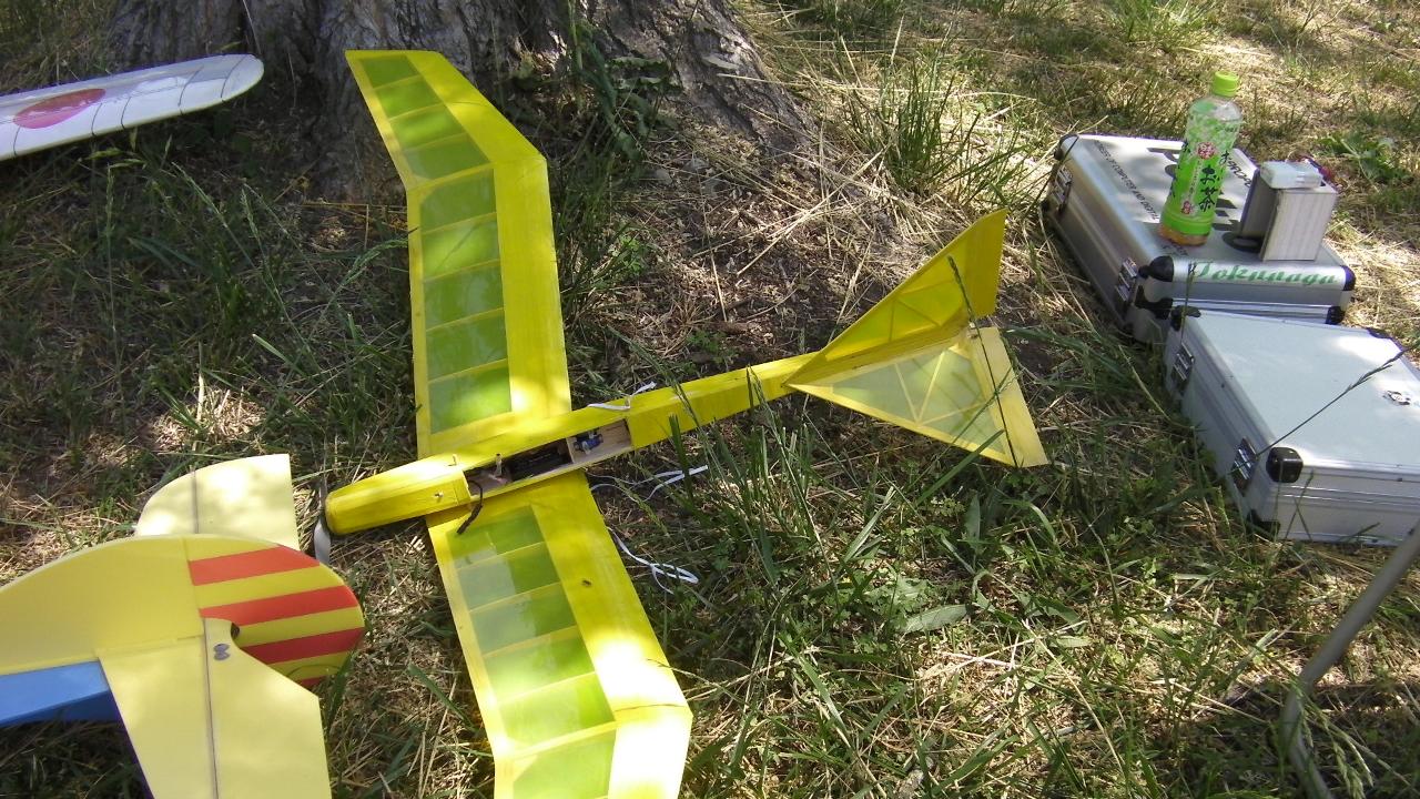 Wing: 1446 (mm)  36.5 (dm^2)  Length:1530 (mm)  Wing:バルサ+フィルム  Fuselage:バルサ+フィルム