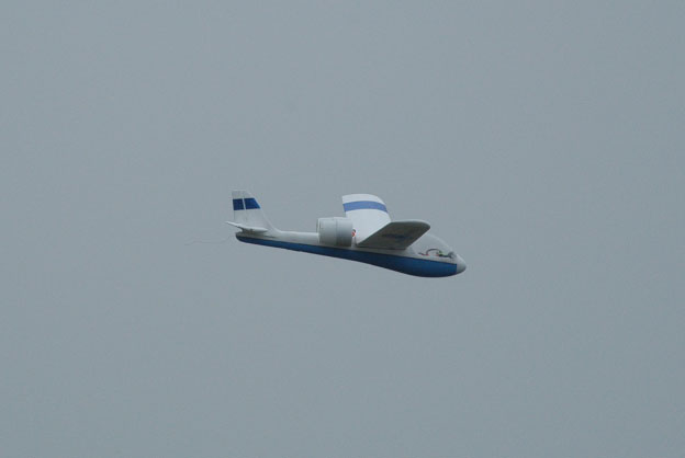 チェコ製発砲スチロールフリーフライト機にツインダクト機を載せRC機化したとのこと。