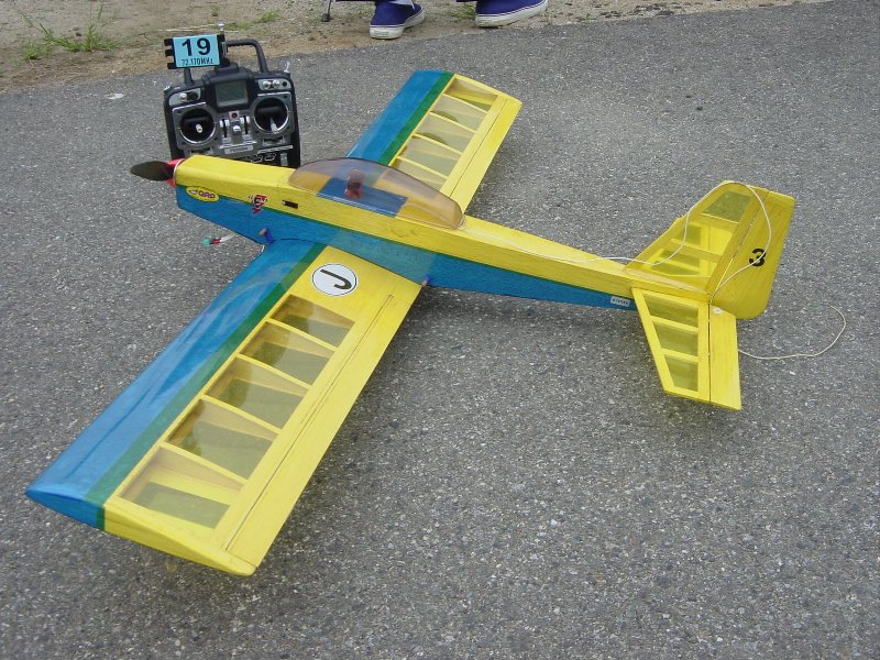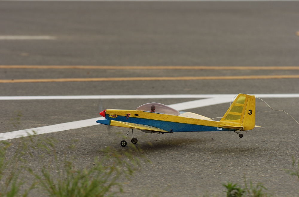 スマイル400を参考にした自作機です。 「本物」ほどの良質の材料や精度は無理ですので外観は似てますが構造はかなり違います。  自分の操縦技術を考慮して本物より穏やかな特性にしたつもりです。 この機体、「つどい」で最後の500ARニッカド搭載機になるかもしれませんね。