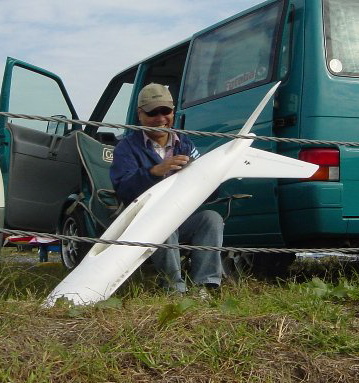 Description: スロープ用の機体を電動化。まだ製作中ですが尾島で初飛行?