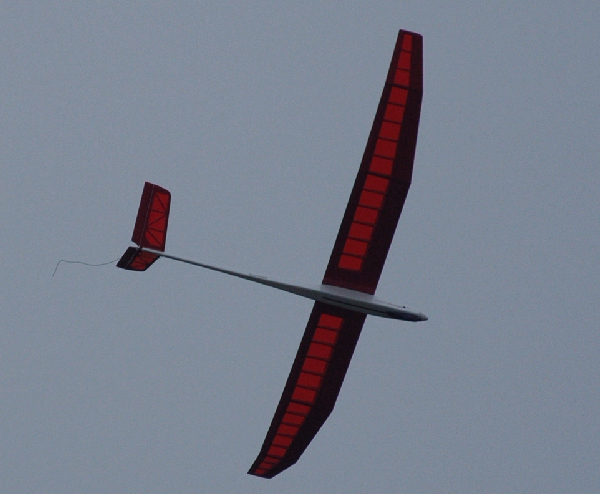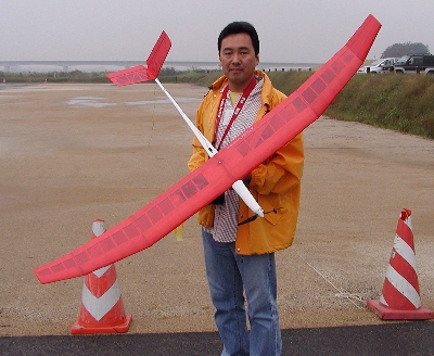 V尾翼の美しい自作機体でした。悪天候にも関わらず、サーマルハンティングをしていました。